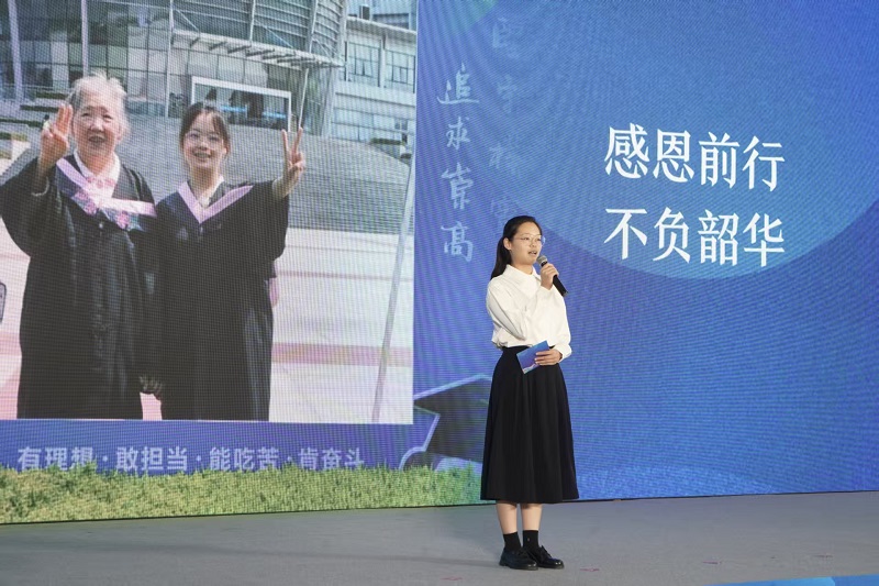 严慧以《扎根溱湖 以青春力量书写新时代文旅答卷》为主题,回顾了自身求学与就业的真实经历,表达了自己将对家乡的深情融入人生选择,以扎根基层的坚守,践行着回报故土的深厚情怀。严慧深情讲述了在淮师四年求学时光里来自国家、社会以及学校的温暖守护,在毕业季,她作为学校就业帮扶的关爱对象,在国家“宏志助航计划”、省级精准培训项目以及校“一人一岗、一生一策”个性化指导的共同助力下,最终,她成功签约家乡泰州的溱湖文旅集团。