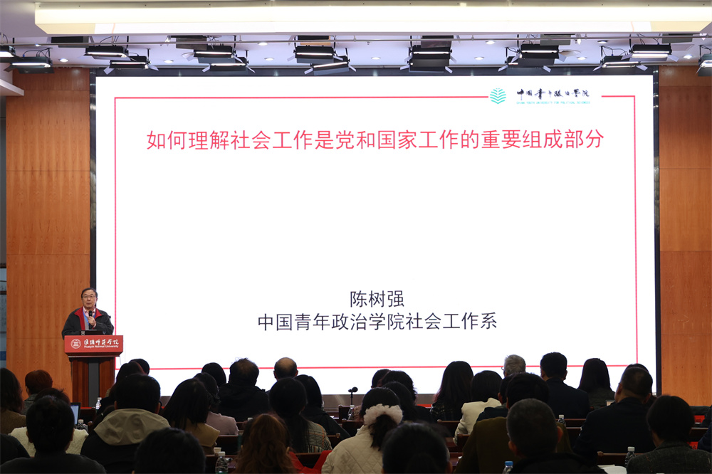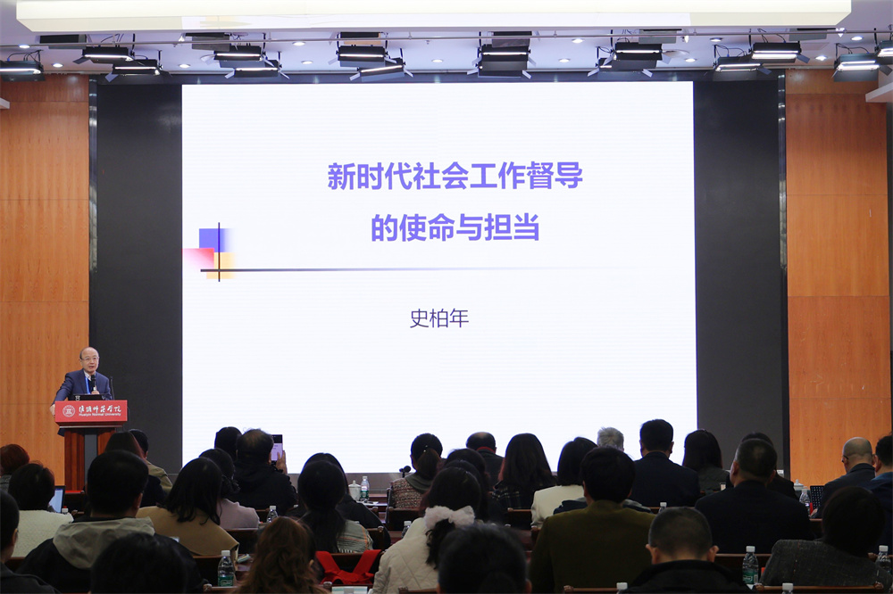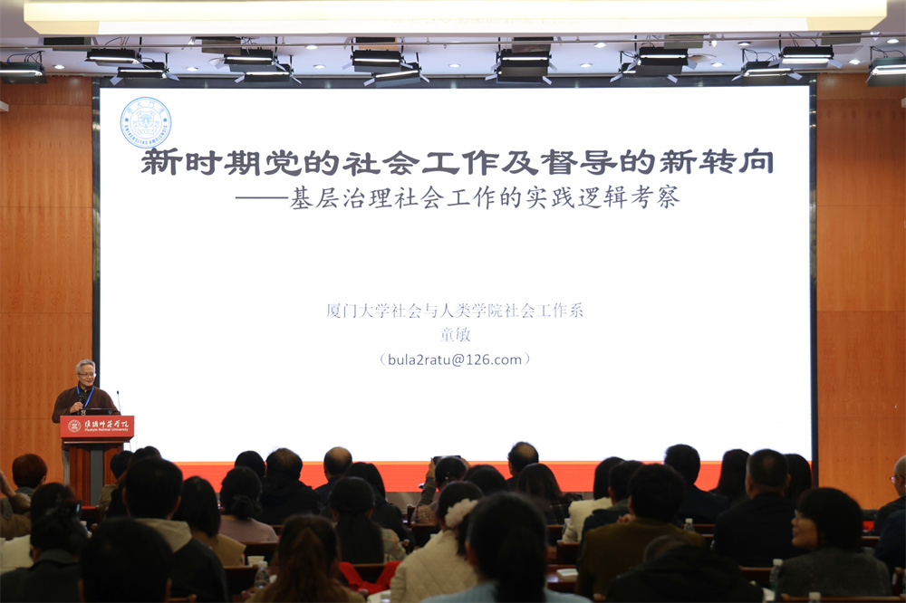 主旨发言环节由南京理工大学沈黎与淮阴师范学院赵海林共同主持。史柏年、陈树强、童敏、范斌等九位专家围绕社会工作督导的使命、机遇与本土实践等议题作报告,引发广泛讨论。