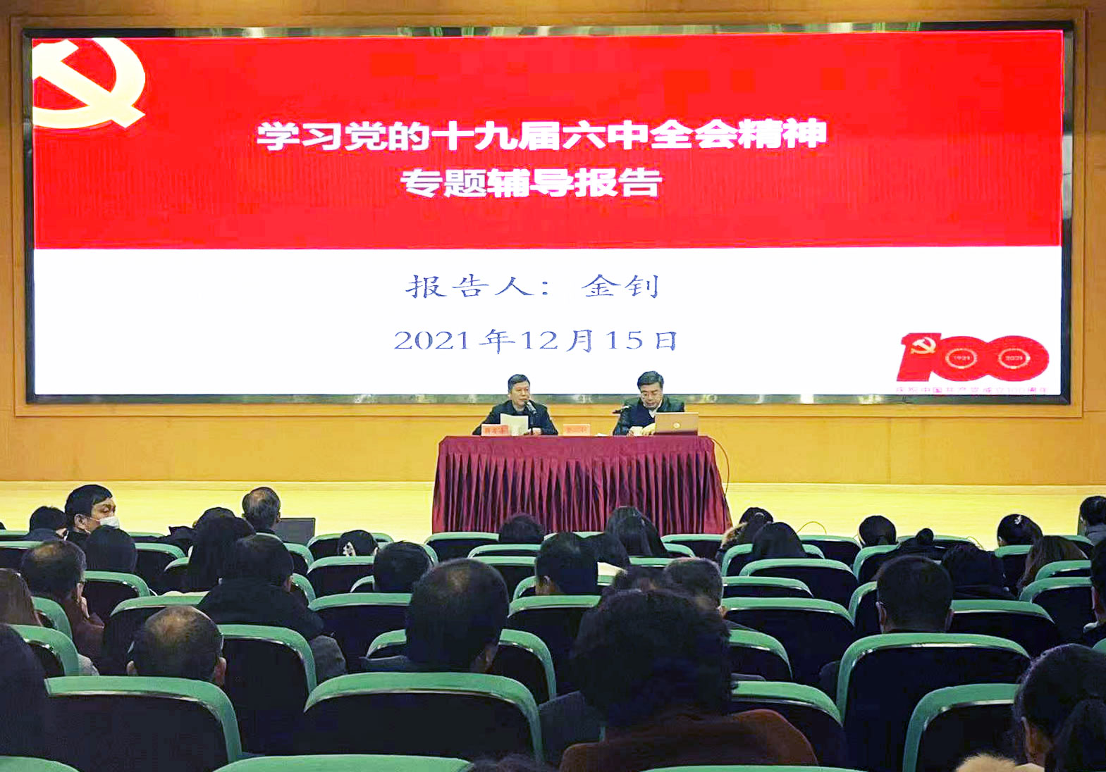 金钊首先介绍了党的十九届六中全会精神的基本情况,并围绕党的十九届六中全会的重大意义、党的百年奋斗重大成就和历史经验、团结结带领人民不断为美好生活而奋斗等三个方面展开,全面总结了党的百年奋斗历程、重大成就和历史经验。金钊指出,党的十九届六中全会胜利召开,是在建党百年历史条件下开启全面建设社会主义现代化国家新征程、在新时代坚持和发展中国特色社会主义的需要;是增强“四个意识”,坚定“四个自信”,坚决维护党中央权威和集中统一领导,确保全党步调一致向前进的需要;是推进党的自我革命、提高全党斗争本领和应对风险挑战能力、永葆党生机活力、团结带领全国各族人民为实现中华民族伟大复兴的中国梦而继续奋斗的需要。金钊还从“坚持以人民为中心,首先要弄清楚谁是人民,人民在哪里”“坚持以人民为中心,就是要把获得感作为发展最鲜明的价值指向”“坚持以人民为中心就要为人民当家作主奠定坚实的制度保障”等三个方面介绍了我国始终牢固确立“人民为中心”的发展思想。