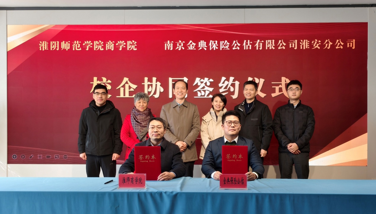 随后,在与会领导的见证下,商学院与南京金典保险公估有限公司淮安分公司正式签署校企合作协议。本次签约标志着商学院在深化产教融合、拓宽毕业生就业渠道、服务地方经济高质量发展方面取得了新的实质性进展。